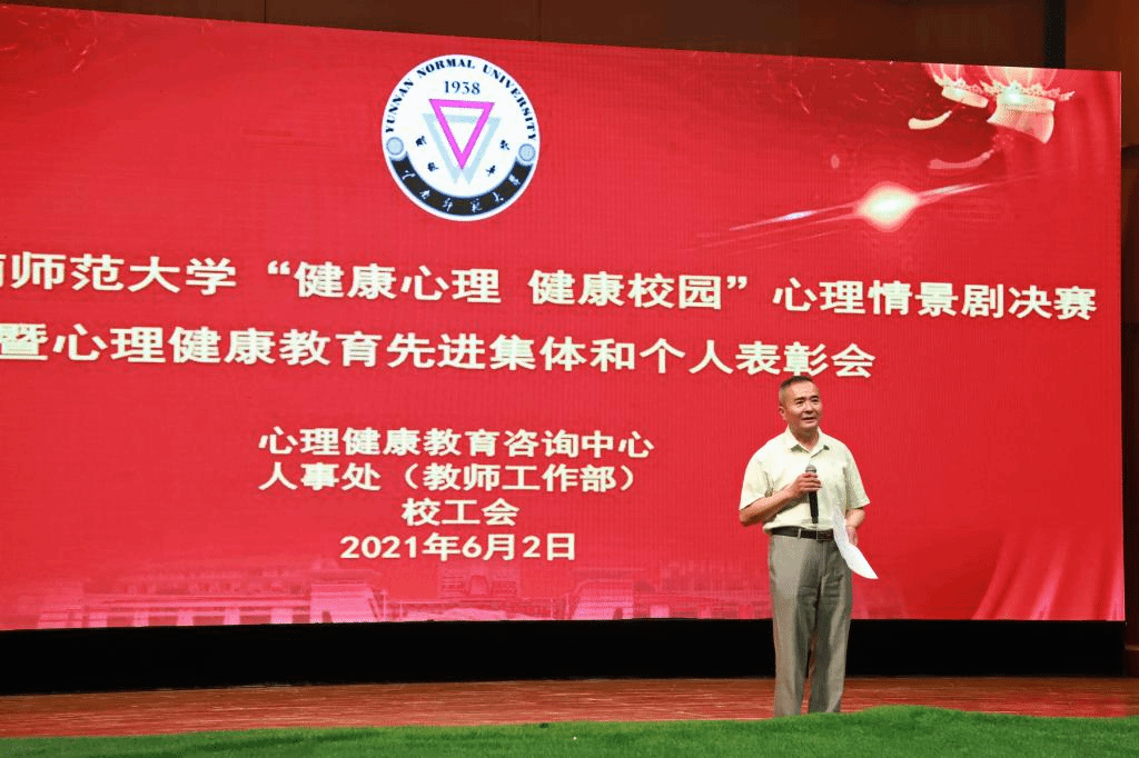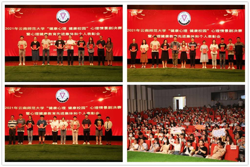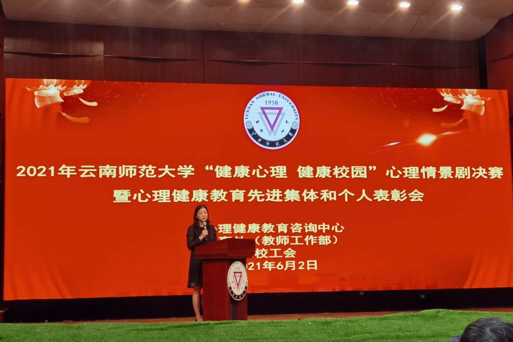 为深入学习贯彻习近平新时代中国特色社会主义思想,全面贯彻落实全国教育大会、全国高校思想政治工作会议精神,不断提升大学生心理健康素质,助力学生健康发展,6月2日下午,太阳官网举行2021年“心健康 心成长 心向党”心理情景剧决赛暨心理健康教育先进集体和个人表彰会,本次活动由心理健康教育咨询中心、人事处(教师工作部)、校工会联合开展,云南省委教育工委学生工作部、校医院、学生处、各学院(学部)师生代表近500余人参与了本次活动。昆明理工大学学生处副处长宋熹,太阳成集团tyc33455cc官网教育学部赵建新教授、校团委书记郑伟俊、研究生处处长黄海涛、音乐舞蹈学院党委书记和红军、马克思主义学院党委书记张健、心理健康教育咨询中心办公室主任尚云担任本次比赛的评委。