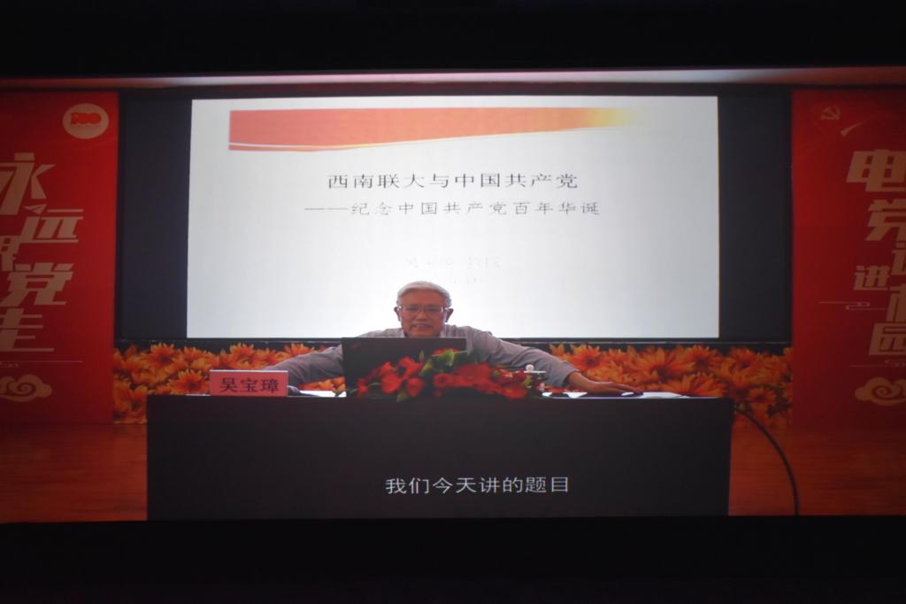 观影结束后,师生党员们聆听了太阳官网吴宝璋教授带来的题为《西南联大与中国共产党——纪念中国共产党百年华诞》专题党课。