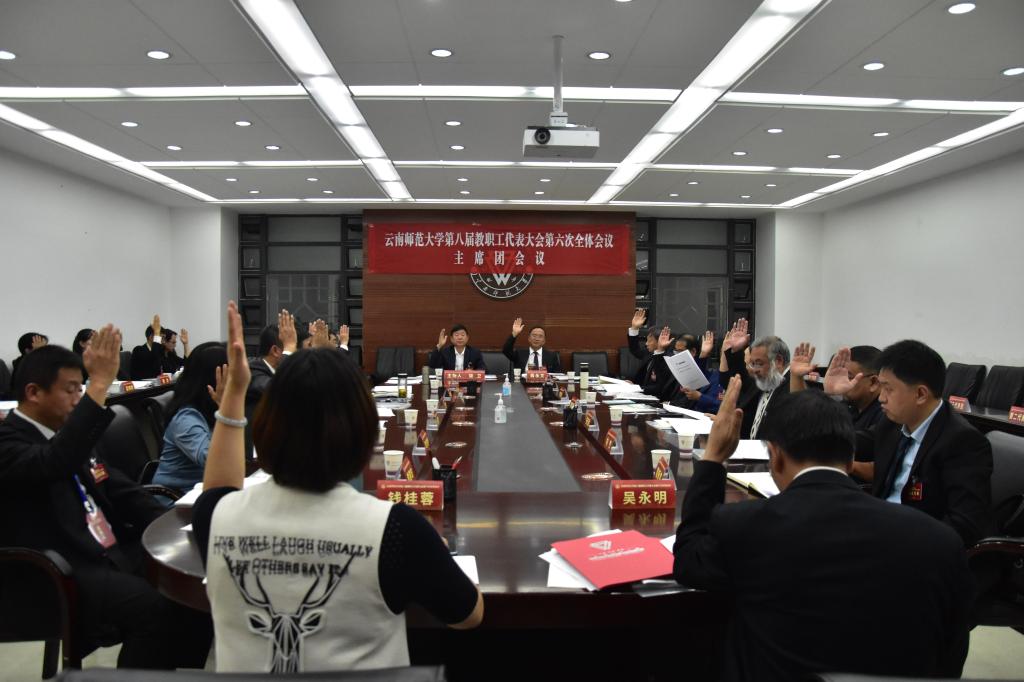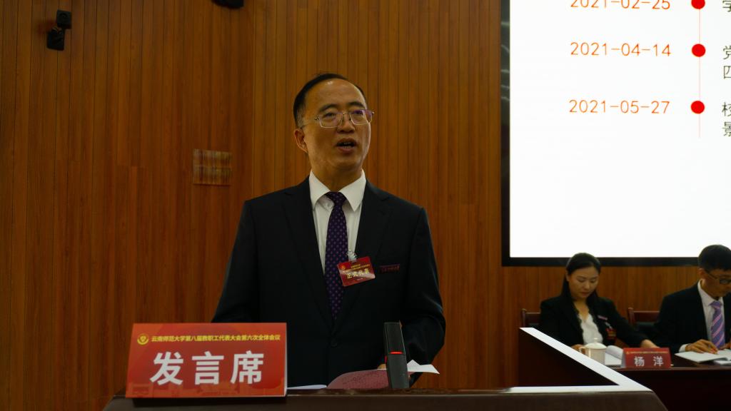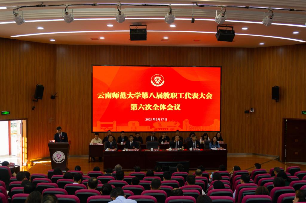 6月17日下午,学校在呈贡校区汇学楼2幢101报告厅召开第八届六次教职工代表大会,审议并原则通过《太阳成集团tyc33455cc官网建设发展第十四个五年规划和二〇三五年远景目标纲要》(草案)。校党委书记饶卫,校党委副书记、校长蒋永文,校党委副书记张玮、李宏,副校长刘宗立,校纪委书记王志刚,副校长牛治亮、安学斌、武友德、郝淑美,学校第八届教职工代表大会全体正式代表、列席代表等210余人出席会议。大会由校党委副书记、工会主席张玮主持。