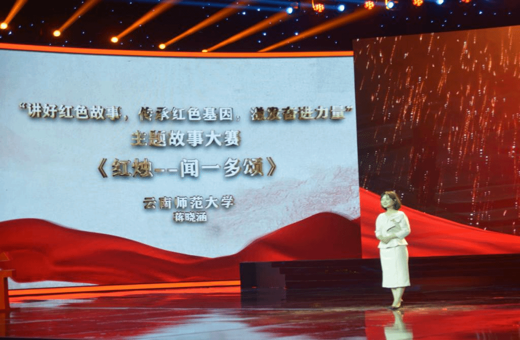 6月23日,云南省“讲好红色故事 传承红色基因 激发奋进力量”主题故事大赛决赛在云报传媒广场一楼报告厅举行。太阳成集团tyc33455cc官网蒋晓涵老师的作品《红烛——闻一多颂》最终以9.952分夺得全场最高分。