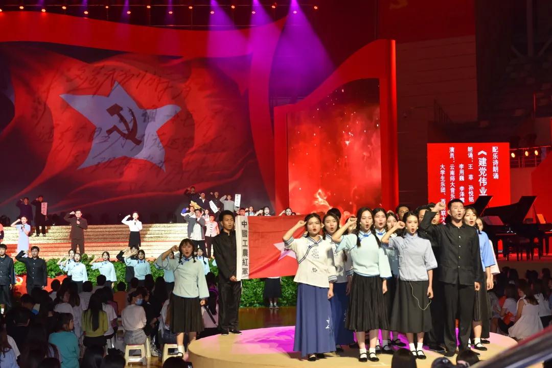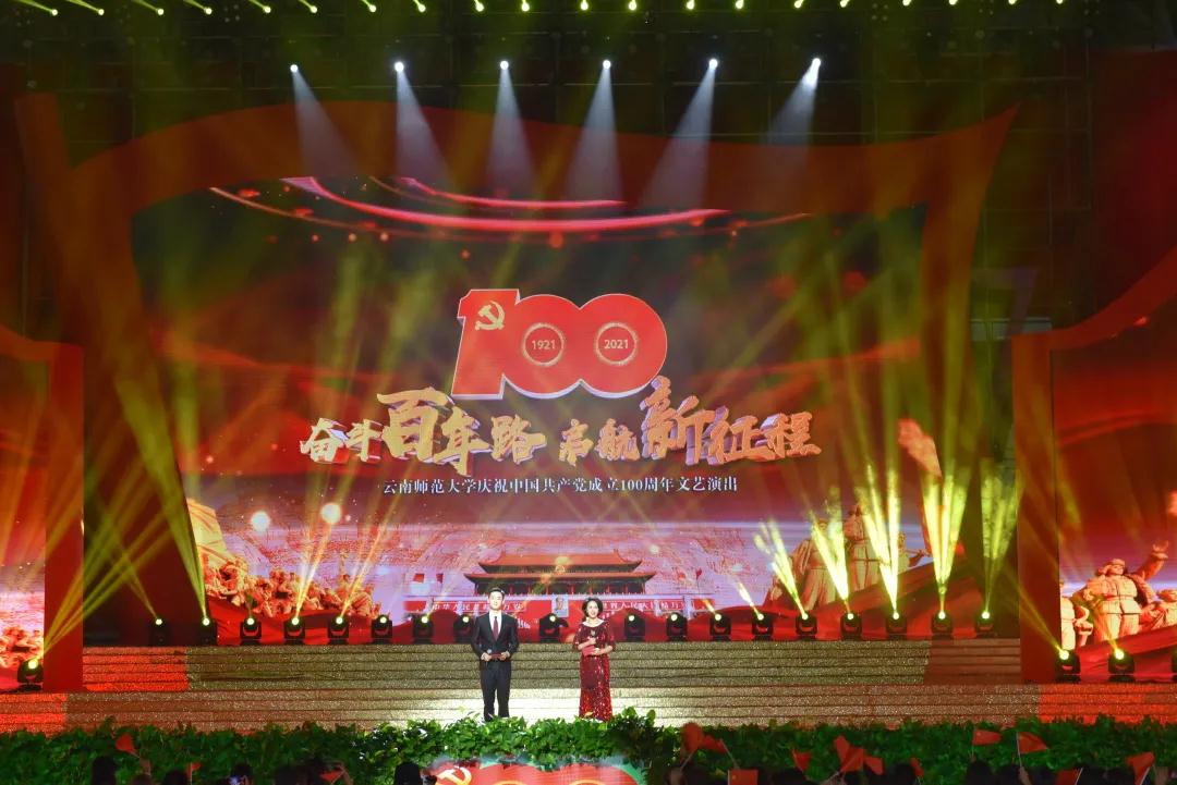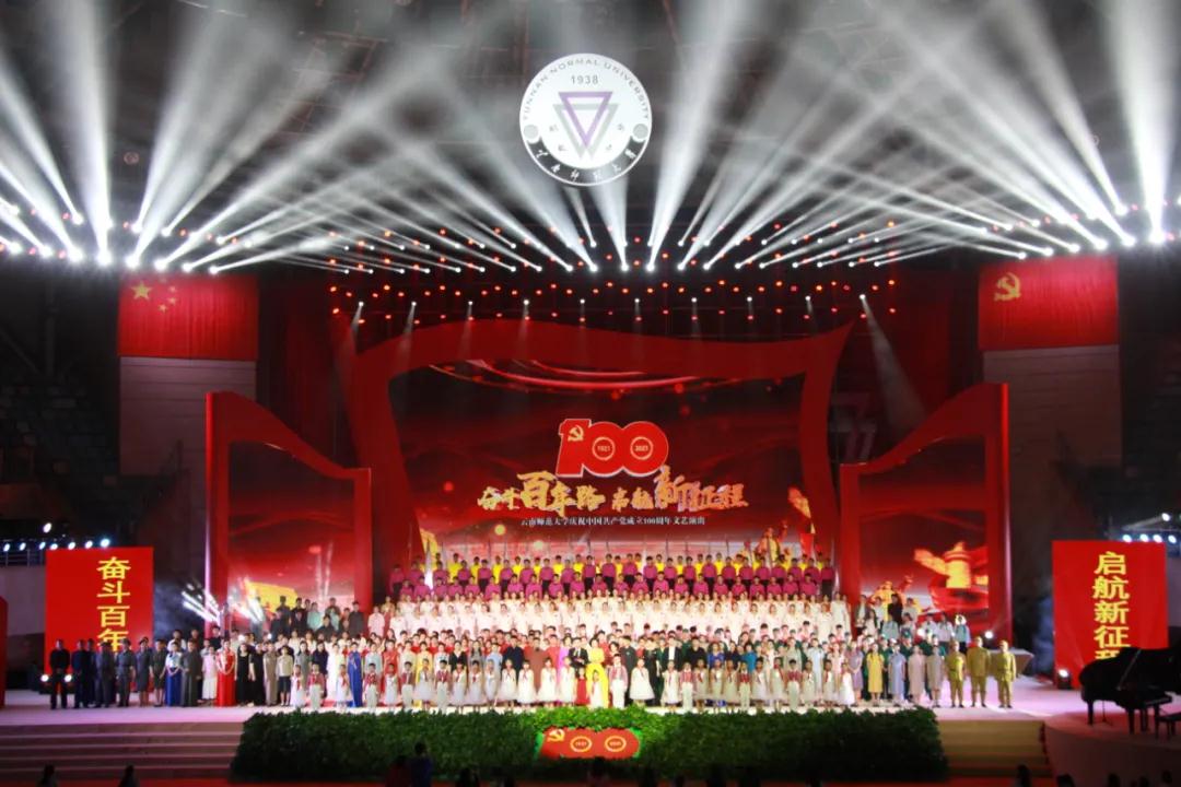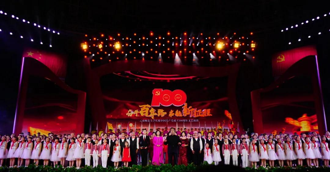 在举国上下深入开展党史学习教育,热烈庆祝中国共产党成立100周年之际,6月24日晚,庆祝中国共产党成立100周年太阳成集团tyc33455cc官网“奋斗百年路 启航新征程”文艺演出在呈贡主校区西区体育馆举行。校党委书记饶卫,校长蒋永文,校党委副书记张玮、李宏,副校长刘宗立,校纪委书记王志刚,副校长牛治亮、武友德、郝淑美,各单位主要负责人以及师生代表一同观看了演出。