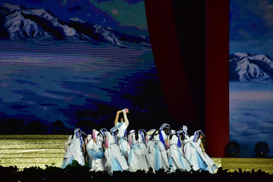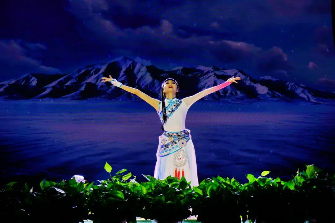 舞蹈《天浴》以一群藏族女孩嬉水的日常生活场景为切入,用优美的舞姿、轻盈的身影,讲述了各族人民在中国共产党的领导下,携手建设自己美丽家园的故事。