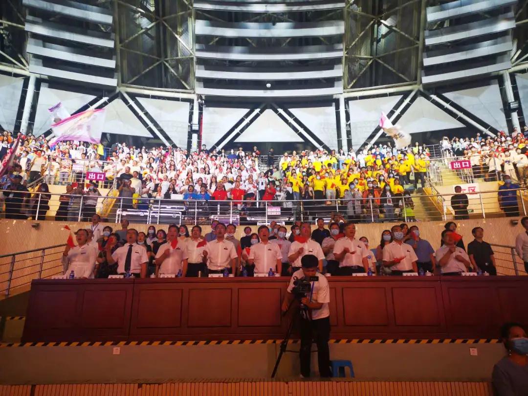 “没有共产党就没有新中国”,嘹亮的歌声响彻体育场上空。大家以声传情,以歌颂党,祝我们伟大的党生日快乐,愿我们伟大的祖国繁荣昌盛!