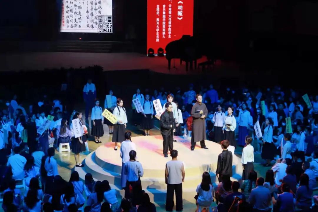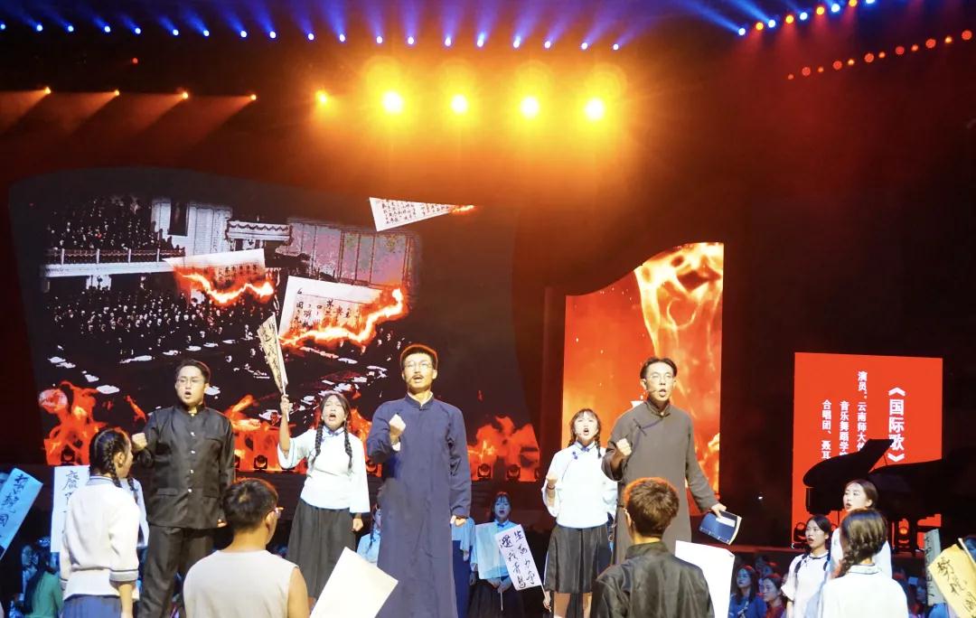 “天下兴亡,匹夫有责”,在国家危难之际,李大钊先生发表激情演讲,动员学生学习马克思主义真理,传播马克思主义思想……情景表演《呐喊》以及慷慨激昂的合唱《国际歌》拉开了整场演出的序幕。