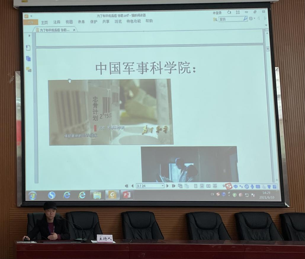 颁奖仪式结束后,外国语学院各党支部党员代表依次进行“光影铸魂”党史学习教育主题汇报。一部部红色经典,展现了师生们一颗颗赤子之心和满腔的报国热情,生动演绎了一堂融合家国情怀、青春热忱的“思政大课”。各支部代表对本次“光影铸魂”党史学习教育主题汇报高度重视,通过音频、视频、图片等多种形式,有声有色向大家展示了党百年来的风雨征程,展现了学院上下一心向党、奋发进取的精神面貌,与党和祖国共奋进、与学校同发展的时代风采。