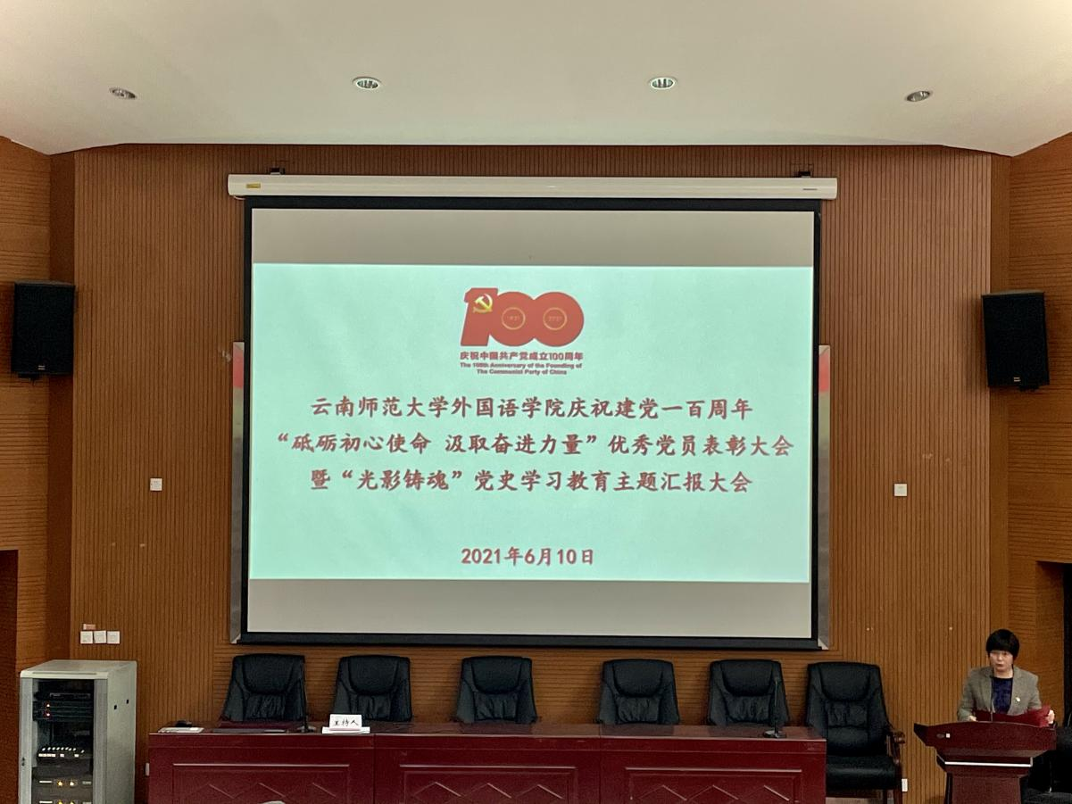 为传承红色基因,讴歌伟大新时代,激发师生的爱党爱国情怀,展现师生朝气蓬勃健康向上的精神风貌,6月10日下午,外国语学院庆祝建党一百周年“砥砺初心使命,汲取奋进力量”优秀党员及优秀党务工作者表彰大会暨“光影铸魂”党史学习教育主题汇报大会在学院报告厅举行。外国语学院全体党委委员及领导班子成员出席会议,学院全体师生党员参会。
