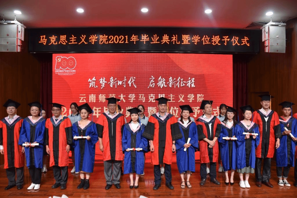 6月22日,马克思主义学院2021届毕业生毕业典礼暨学位授予仪式在呈贡主校区明德1号楼报告厅举行。校党委李宏副书记、马克思主义学院党政班子全体成员、学院学位评定分委员会委员、导师、教师代表以及2021届本硕毕业生近300人参加了典礼。典礼由马克思主义学院张悦副院长主持。