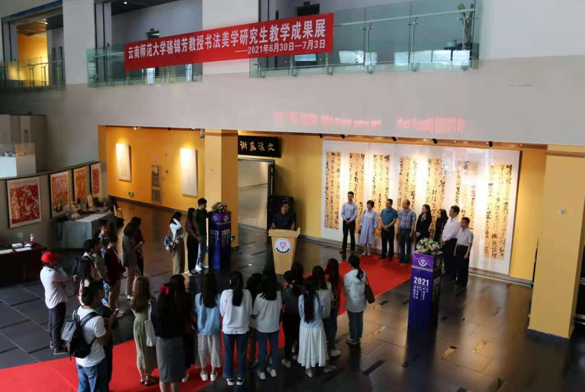 在庆祝中国共产党建党100周年之际,文学院骆锦芳教授举办美学专业研究生教学成果展,展览以建党百年和西南联大为主题,以骆锦芳教授创作的相关作品为主要书写内容,展现时代精神;同时也展览了骆锦芳教授学生在书法美学方面的所学所得。本次成果展于6月30日至7月3日展出,历时4天。