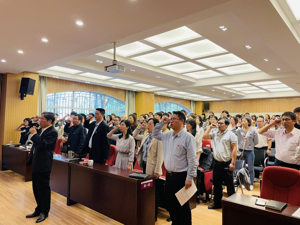 在学院党委书记和向朝同志的带领下,全体师生党员重温入党誓词,进一步铭记共产党员的责任,感悟中国共产党的光辉历程,坚定为共产主义事业奋斗终身的理想信念。