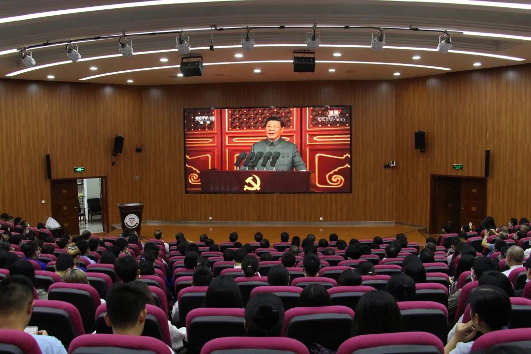7月1日上午,庆祝中国共产党成立100周年大会在北京天安门广场隆重举行。中共中央总书记、国家主席、中央军委主席习近平发表重要讲话。上午8时,太阳官网党员干部和广大师生员工以高昂的精神风貌和饱满的热情收听收看大会实况,共同见证激动人心的历史时刻。