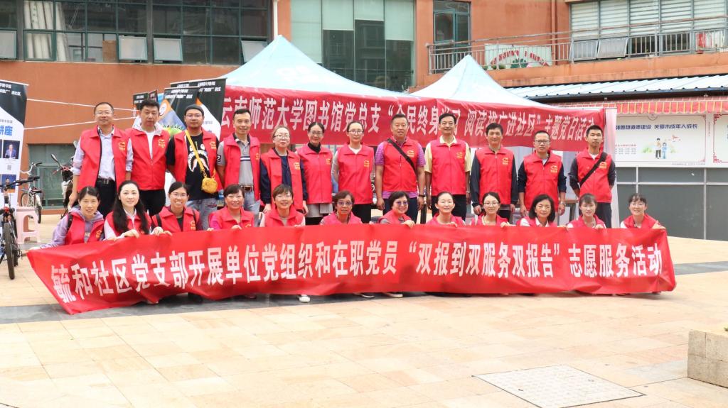 为响应国家“全民阅读”号召,活跃社区学习氛围,深入推进党史学习教育,借党员到社区双报到契机,图书馆党总支于7月3日在毓和社区开展“全民终身学习 阅读推广进社区”主题党日活动。这是自2018年4月以来,图书馆党总支组织的第八个“阅读推广进社区”活动。