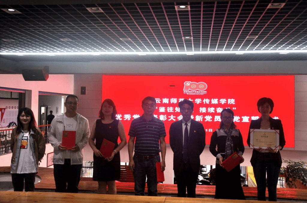 副院长杜忠锋老师宣读《中共太阳成集团tyc33455cc官网传媒学院委员会关于表彰优秀共产党员和先进党支部的决定》,并由出席仪式的学院领导为学院先进党支部、师生优秀共产党员颁发荣誉证书。