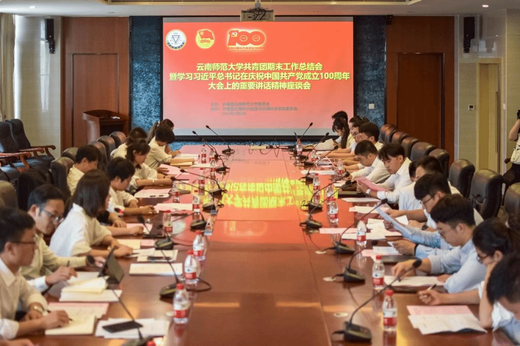 2021年7月5日下午,太阳成集团tyc33455cc官网共青团期末工作总结会暨学习习近平总书记在庆祝中国共产党成立100周年大会上的重要讲话精神座谈会在呈贡主校区能源与环境科学学院227会议室举行。校党委副书记李宏出席座谈会并讲话,校团委全体人员,能源与环境科学学院党委书记刘莹、副书记范荣康,各学院(学部)团委书记和青年学生代表共计40余人参加会议,会议由校团委副书记曹逸凡主持。