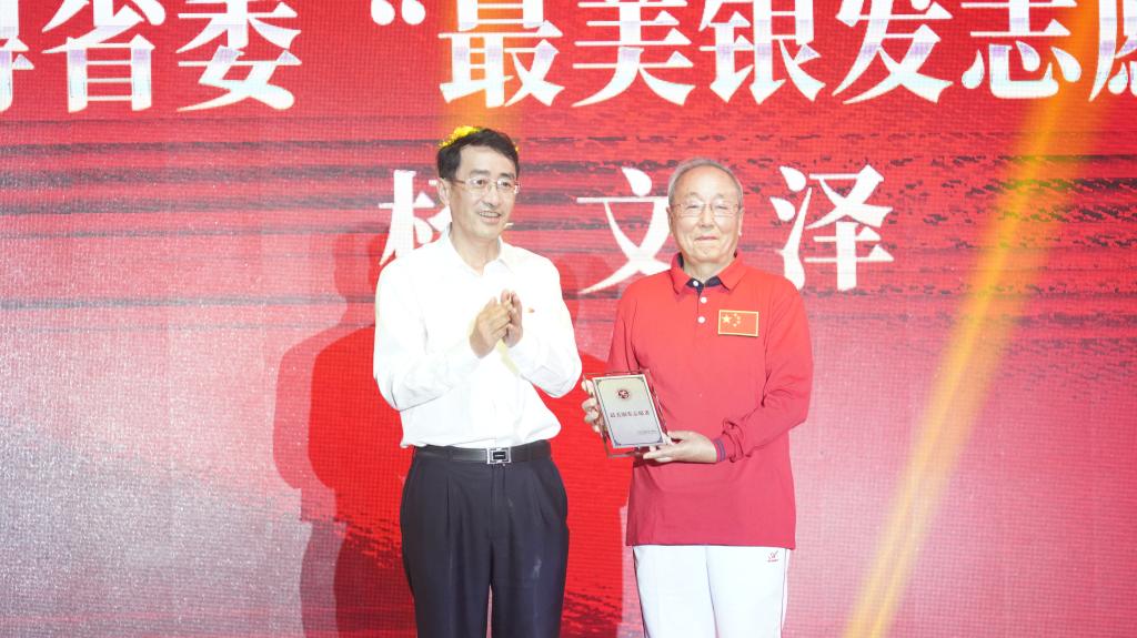 活动伊始,离退休教职工党委书记王琼玲同志宣读了《关于“庆祝中国共产党成立100周年”文艺作品表彰决定》。接着,一曲演绎革命英烈、时代楷模、志愿服务先进典型等形象的音诗画——《不忘初心跟党走》震撼登场。激动人心的颁奖环节与精彩纷呈的文艺节目交叉进行。学校党委副书记张玮同志为退休老领导杨文泽颁发了中共云南省委老干部局授予的“最美银发志愿者”荣誉奖牌,离退休工作领导小组成员单位、一二一西南联大校区各单位负责人为文艺作品获奖者颁发了证书。