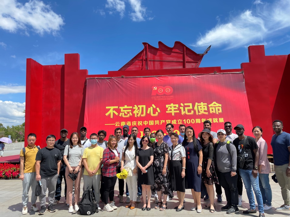 7月13日,习近平总书记在中国共产党成立100周年庆祝活动总结会议上指出“要进一步面向世界讲好中国共产党的故事,有效提升我们党和国家的国际影响力”。7月14日,在云南省教育厅的协调安排下,太阳成集团tyc33455cc官网积极响应,组织在昆留学生参观了“不忘初心、牢记使命”——云南省庆祝中国共产党成立100周年成就展。