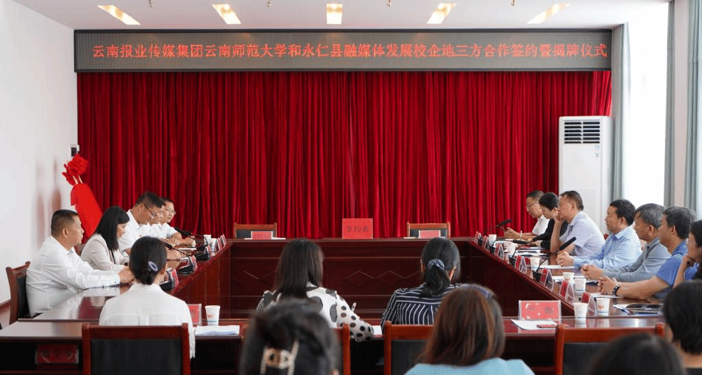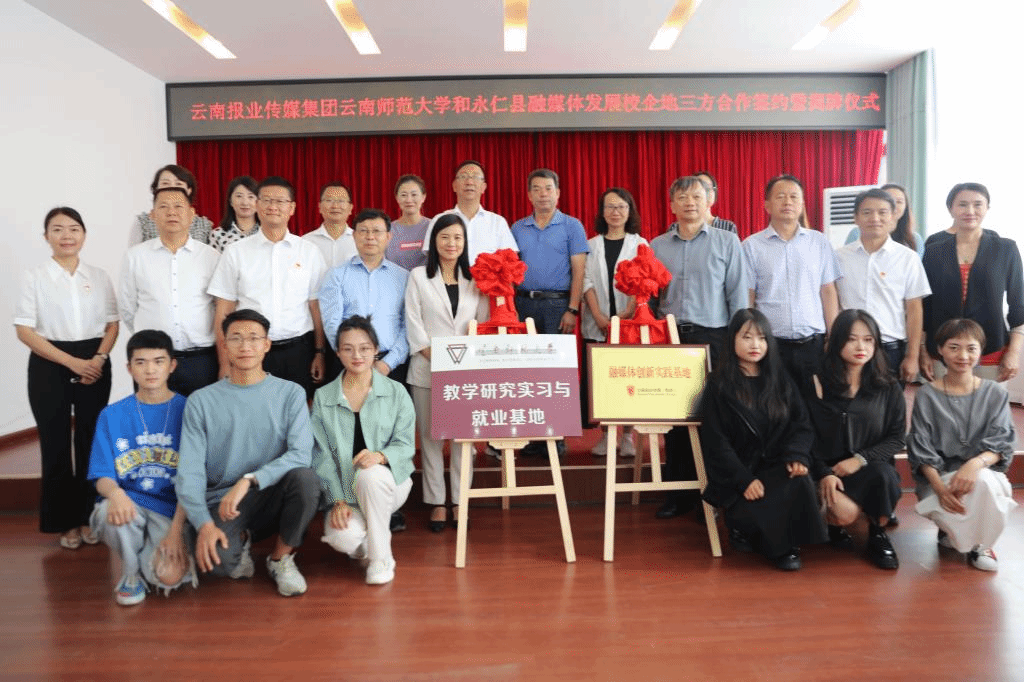 7月29日,云南报业传媒集团、太阳成集团tyc33455cc官网和永仁县融媒体发展校企地三方合作签约暨揭牌仪式在永仁会堂三楼举行,“云南报业传媒(集团)有限责任公司融媒体创新实践基地”“太阳成集团tyc33455cc官网传媒学院与永仁县融媒体中心实践教学基地”正式落地永仁县融媒体中心。