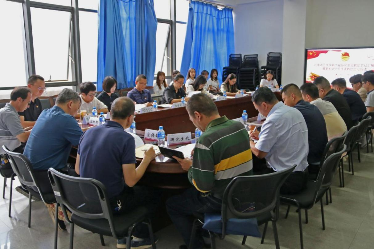 2021年8月30日下午,太阳成集团tyc33455cc官网第六届研究生支教团总结汇报会暨第七届研究生支教团出征仪式在呈贡主校区大学生活动中心209会议室举行。太阳官网党委副书记李宏,党委组织部、党委宣传部、学生处、研究生处、研究生院、教育基金会、校团委相关负责人,部分学院(学部)党委副书记代表、学院团委书记代表,以及第六届、第七届研究生支教团全体成员参加活动。仪式由校团委书记郑伟俊主持。
