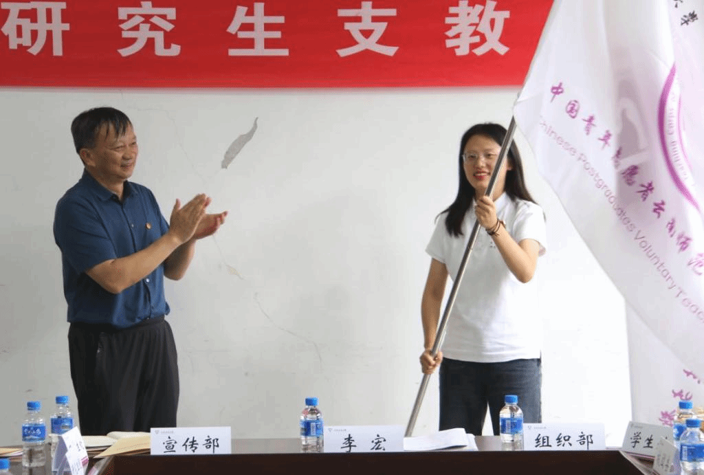 仪式上,李宏副书记为第七届研支团授支教团团旗,校党委组织部副部长马春雨为第七届研支团授党旗,校团委副书记曹逸凡为第七届研支团授团旗。第七届研支团全体成员进行了志愿者宣誓。