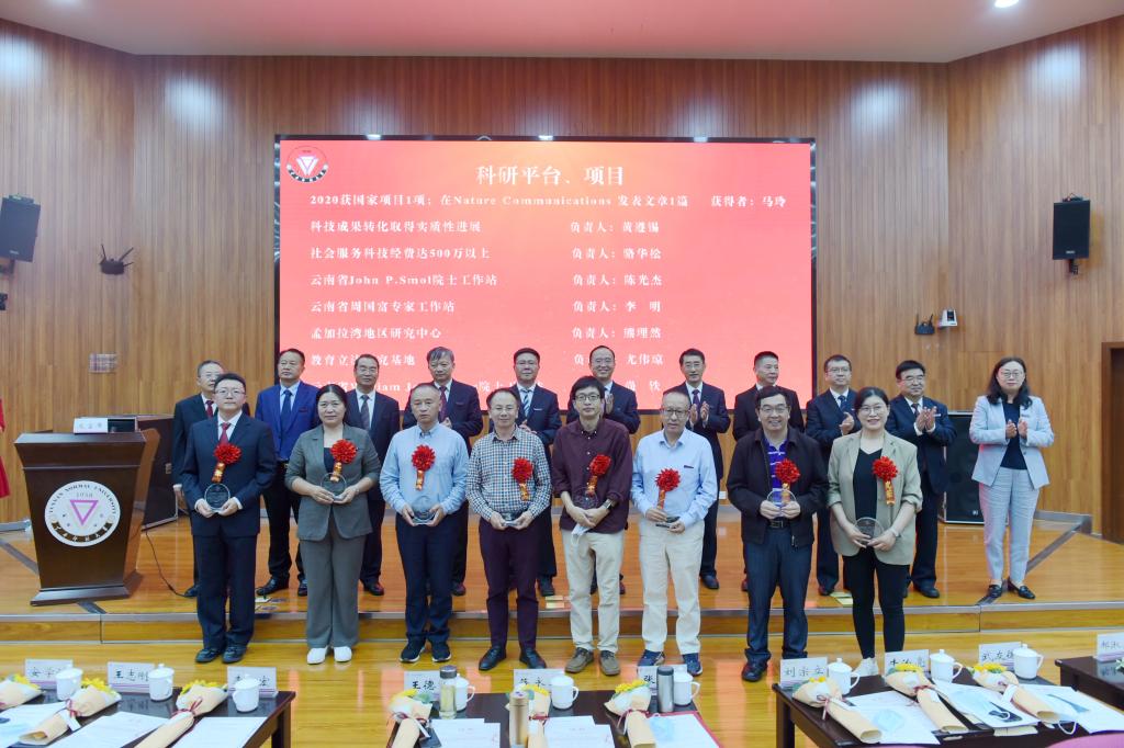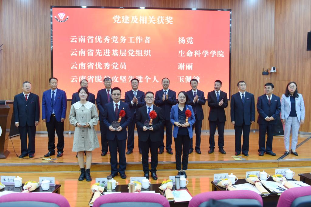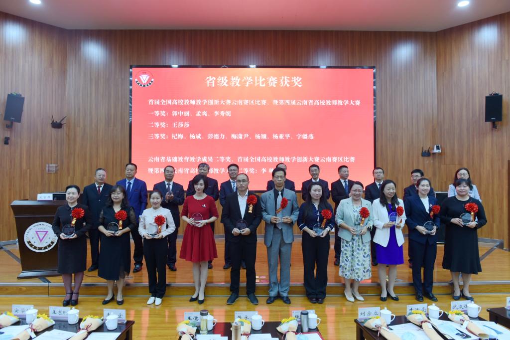 在热烈喜庆的氛围中,校领导班子成员为国家级高层次人才、省部级高层次人才,全国“五一劳动奖章”获得者,国家级、省级科研平台及项目代表,云南省“高层次人才引进计划”青年人才、云南省“高层次人才培养支持计划”青年拔尖人才,省级党建工作奖项获得者,省级教学比赛获得者,学校第三届本科“卓越教学奖”获得者等颁发了奖状和奖杯。