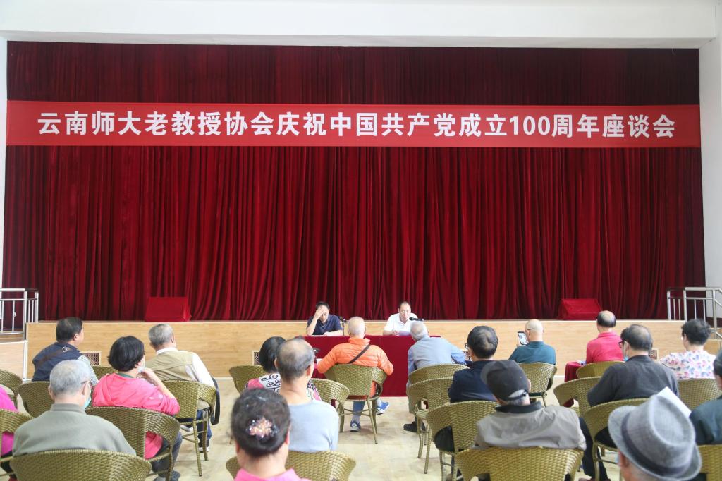 9月22日下午,太阳成集团tyc33455cc官网老教授(老科协)协会在一二一西南联大校区西院离退休教工活动中心召开云南师大老教授协会庆祝中国共产党成立100周年座谈会。协会全体理事,参加离退休教职工党委、离退休工作处及老教授协会共同主办的庆祝中国共产党成立100周年征文活动的会员以及获奖者共50多人参加了座谈会。