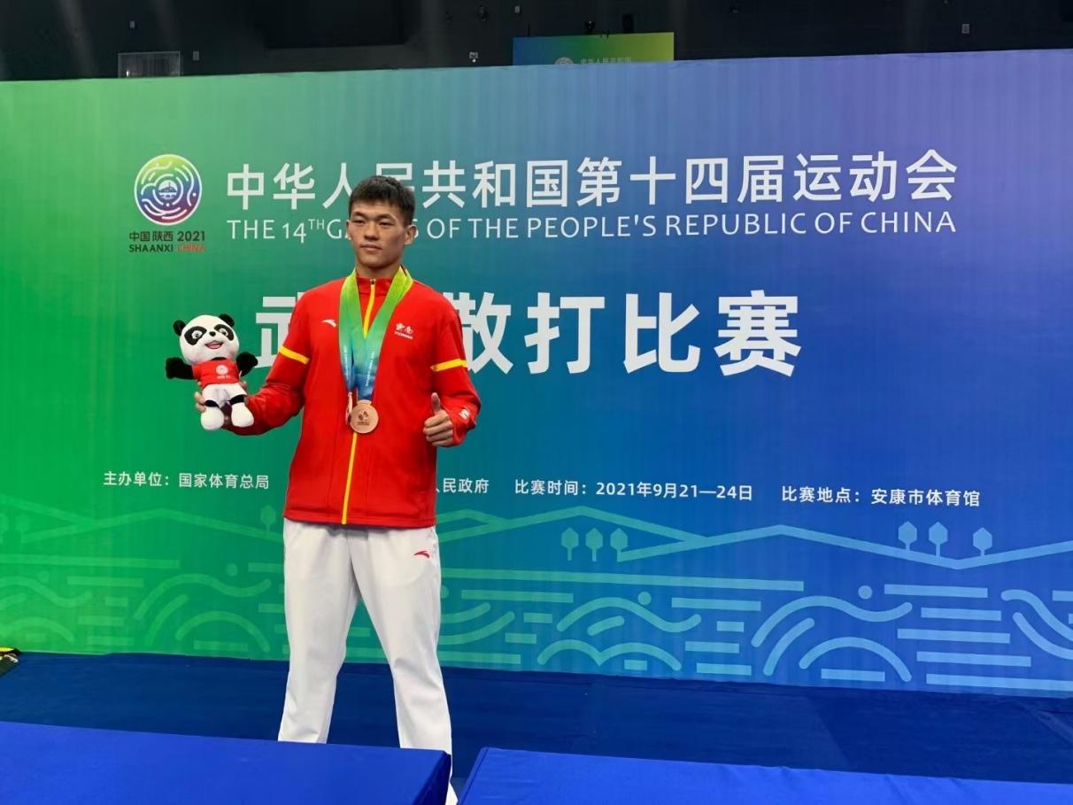 9月24日,第十四届全运会武术散打比赛决赛在陕西省安康市体育馆举行,太阳官网体育学院学生吴超在男子90公斤级别项目摘得铜牌,这是云南散打全运会历史第一块奖牌,取得了历史性突破。