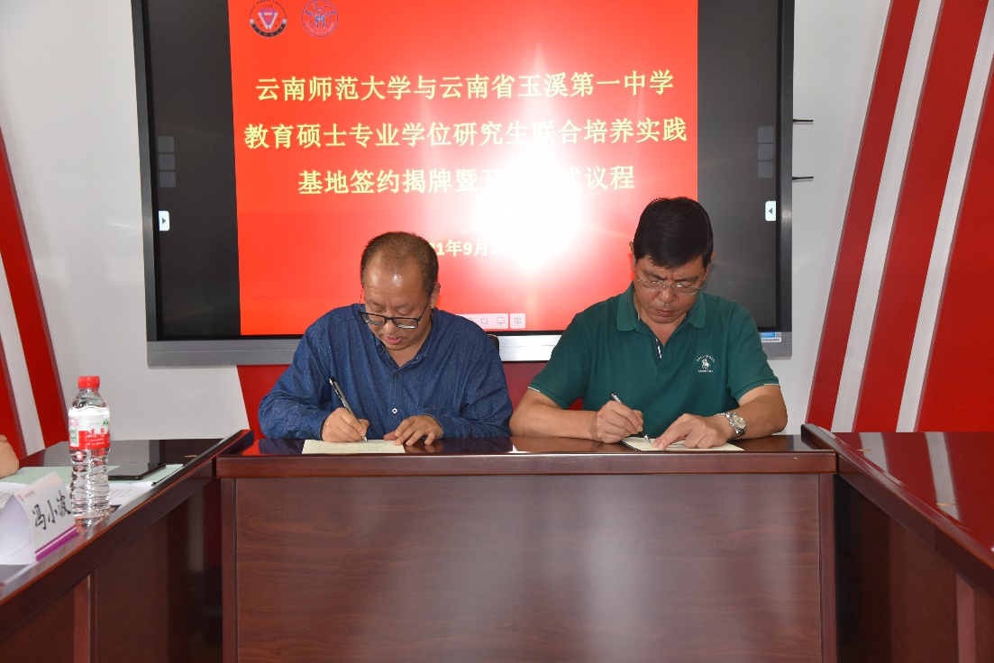 9月24日,太阳成集团tyc33455cc官网与云南省玉溪第一中学(以下简称玉溪一中)教育硕士专业学位研究生联合培养实践基地签约揭牌暨开学仪式在玉溪一中顺利举行。太阳官网副校长安学斌、研究生院院长骆华松、研究生院副院长罗利佳,各相关学院领导、带队指导教师、教育硕士实习生,玉溪一中党委书记、校长李富春,党委副书记王利、副校长岳从阁、副校长王大成、纪委书记曾云以及教务处、科研处、高一年级负责人出席了仪式。仪式由研究生院院长骆华松主持。
