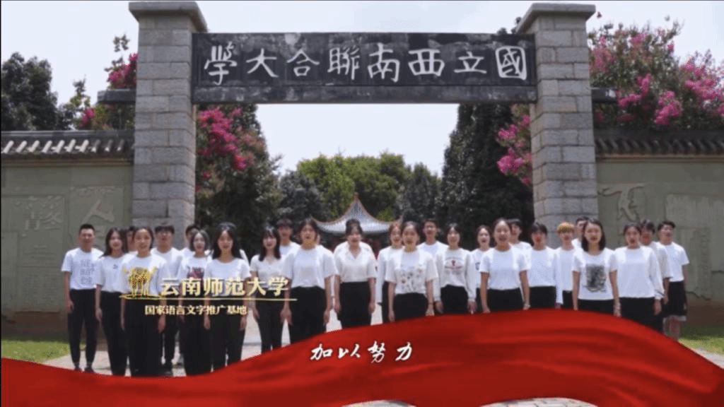 为庆祝中国共产党成立100周年,深入推进党史学习教育,太阳成集团tyc33455cc官网国家语言文字推广基地响应由教育部语言文字应用管理司主办的2021年“全国校园节庆日诵读活动”,积极参与“传诵红色经典 讴歌百年风华——七一主题诵读视频征集”活动,由传媒学院谭辉老师指导,朱德阳、张昌雅、王修琳等24位同学朗诵的《青春》(节选)入选合诵作品展示,云师青年学子与全国各校大学生们合诵李大钊《青春》(节选),用声音的力量,传诵红色经典,讴歌党的百年风华。合诵作品于9月19日晚在中国教育电视台一频道播出。