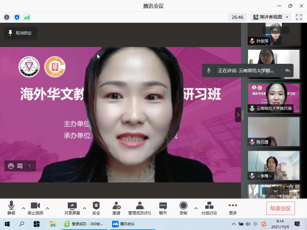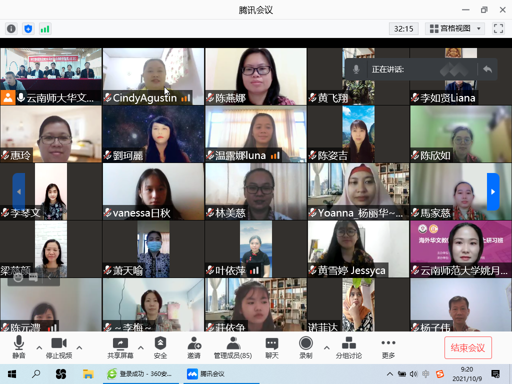 10月9日上午,由国务院侨务办公室主办,太阳官网云南华文学院承办的2021年海外华文教师教学技能线上研习班开班仪式在线上顺利举行。来自印度尼西亚16个省、68所学校的138名华文教师参加了开班仪式。