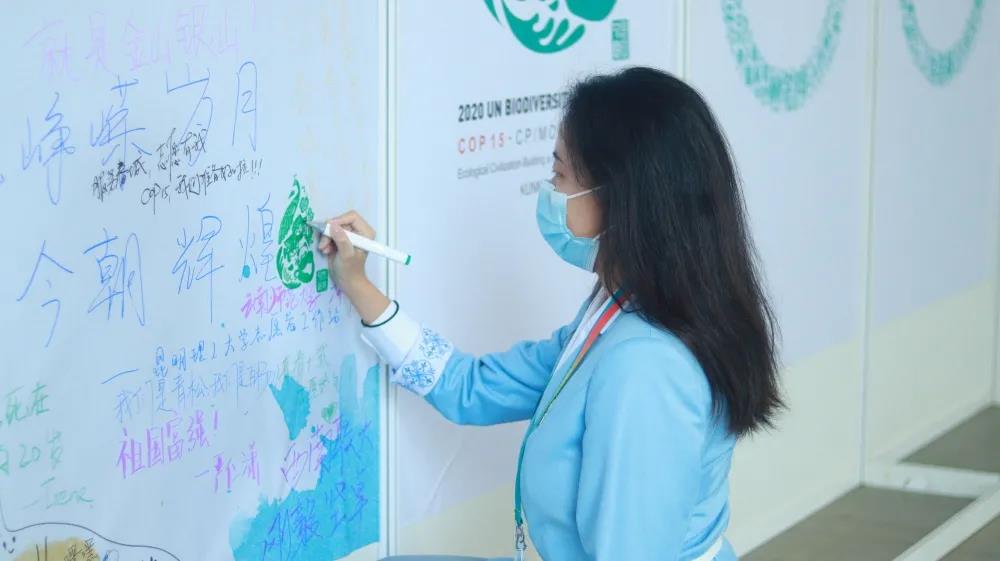 云师新闻中心的记者年紫若担任了COP15宣传发动组的骨干志愿者,主要负责会议期间关于COP15志愿者的拍照、采访、写稿及微信推文制作等宣传工作,讲述这群云南青年志愿者背后的故事。