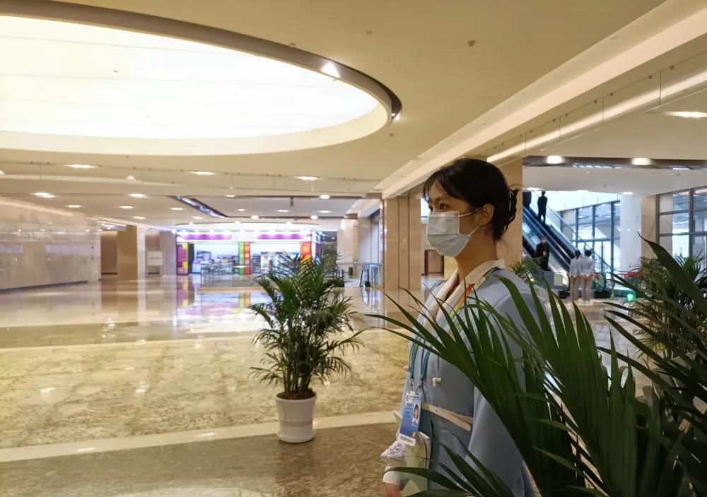 游嘉雯具体负责会场二楼会议中心的志愿工作。工作内容主要是引导宾客,当有外宾进入二楼会议中心时,与外宾进行一些简单的口语交流。作为一名英语专业的学生,游嘉雯每天都熟悉负责片区的分布以及各个场馆的英文表达,时刻牢记志愿者工作手册对礼仪工作的要求,以良好的精神面貌坚守在自己的岗位上。