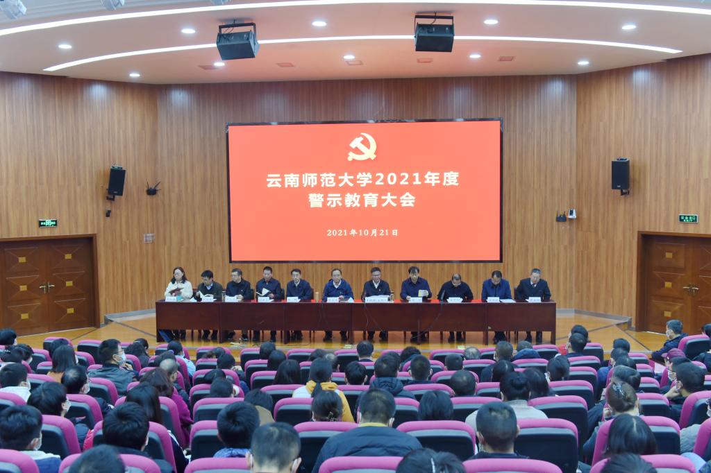 校党委书记蒋永文同志在讲话中指出,学校召开2021年度警示教育大会,主要目的是深入贯彻落实党中央、省委全面从严治党决策部署,通报太阳官网重点纪律审查案例,以案示警、以案明纪、以案为鉴,以身边事教育身边人,切实做到防微杜渐、警钟长鸣,进一步加强学校党风廉政建设和反腐败工作。一是要以案为鉴,深刻汲取反面典型案例沉痛教训;二是要提高站位,切实增强“以案促改”的思想自觉和行动自觉;三是要坚定不移推动全面从严治党向纵深发展,加快“清廉师大”建设。蒋书记强调,在党中央、省委的坚强领导下,全面从严治党没有局外人,党风廉政建设和反腐败斗争永远在路上,要坚持“严”的主基调,坚持稳中求进的工作方针,切实加强各级领导班子和干部队伍建设,加强纪律建设,不断提高学校治理体系和治理能力现代化水平,打造清廉校园,构建风清气正的校园政治生态和教书育人环境,为云南加快社会主义现代化建设作出新的更大贡献。
