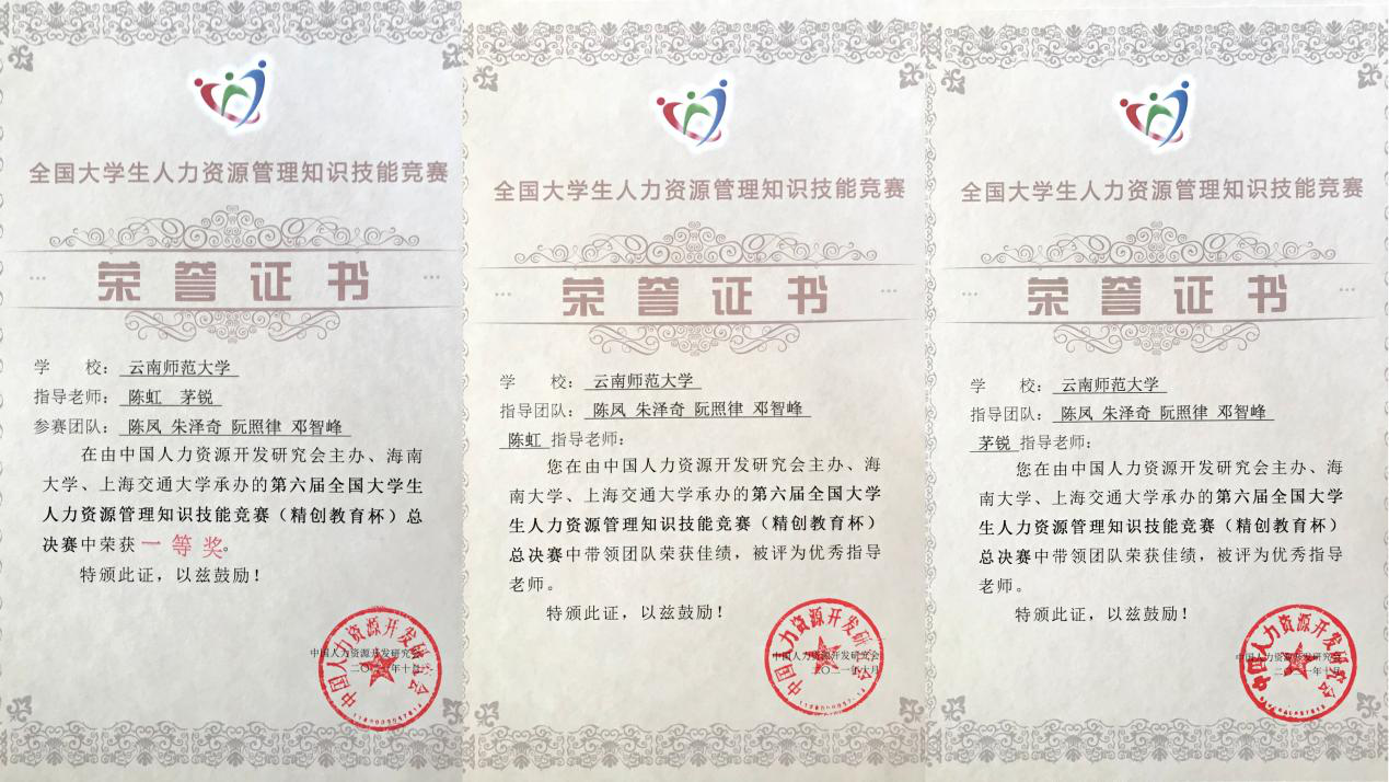 教育学部自2016年以来连续六年组织学生参加全国大学生人力资源管理知识技能竞赛,均取得较优异的成绩,充分展现了指导教师爱岗敬业的师德品质、学生扎实的专业技能、勇于拼搏的精神风貌和团结协作的团队精神。教育学部始终坚持“以赛促学”和“以赛促教”的理念,积极支持师生参赛,一方面,让学生对所学专业知识有深入的了解和实践,开拓了眼界,提升学生的综合素质;另一方面,有利于教育学部教师积极探索和创新本科生跨专业联合实验和实践教学,不断提高本科生人才培养质量。在全国大学生技能比赛中获奖,也是教育学部系统推进“考研工程”“学科竞赛工程”“学术训练工程”,促进学风转变和提升人才培养质量的阶段性成果之一。