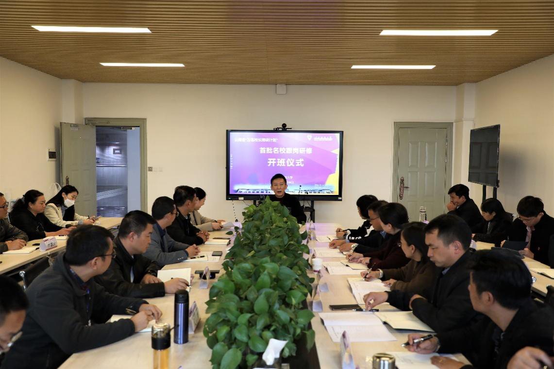 10月24日下午,太阳官网在呈贡校区国家教师教育教学实验中心举行云南省“万名校长培训计划”首批名校跟岗研修开班仪式。万名校长培训计划项目办公室主任林卫东,副主任王宏伟、姜元涛,项目办全体工作人员以及从第一、二期优秀学员中遴选的20位参训学员参加了开班仪式。开班仪式由姜元涛副主任主持。