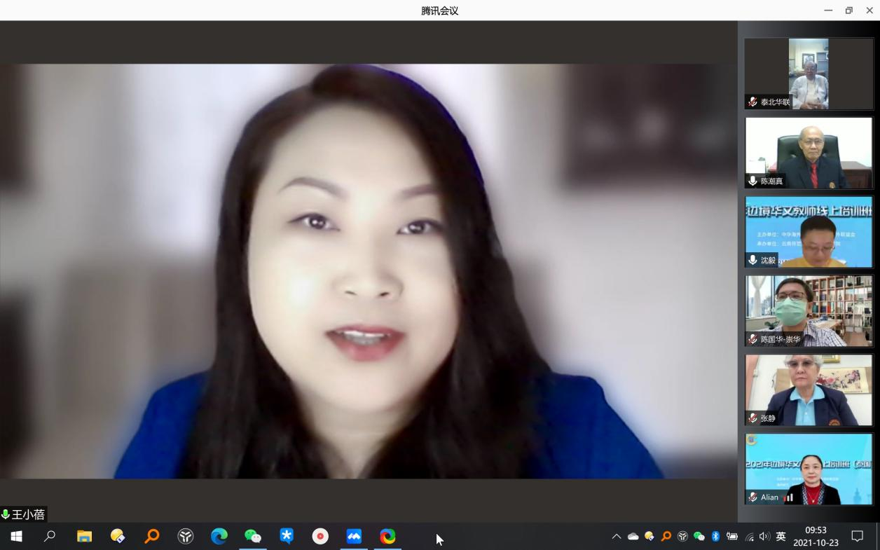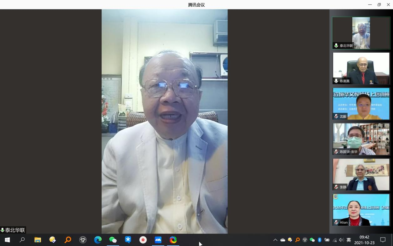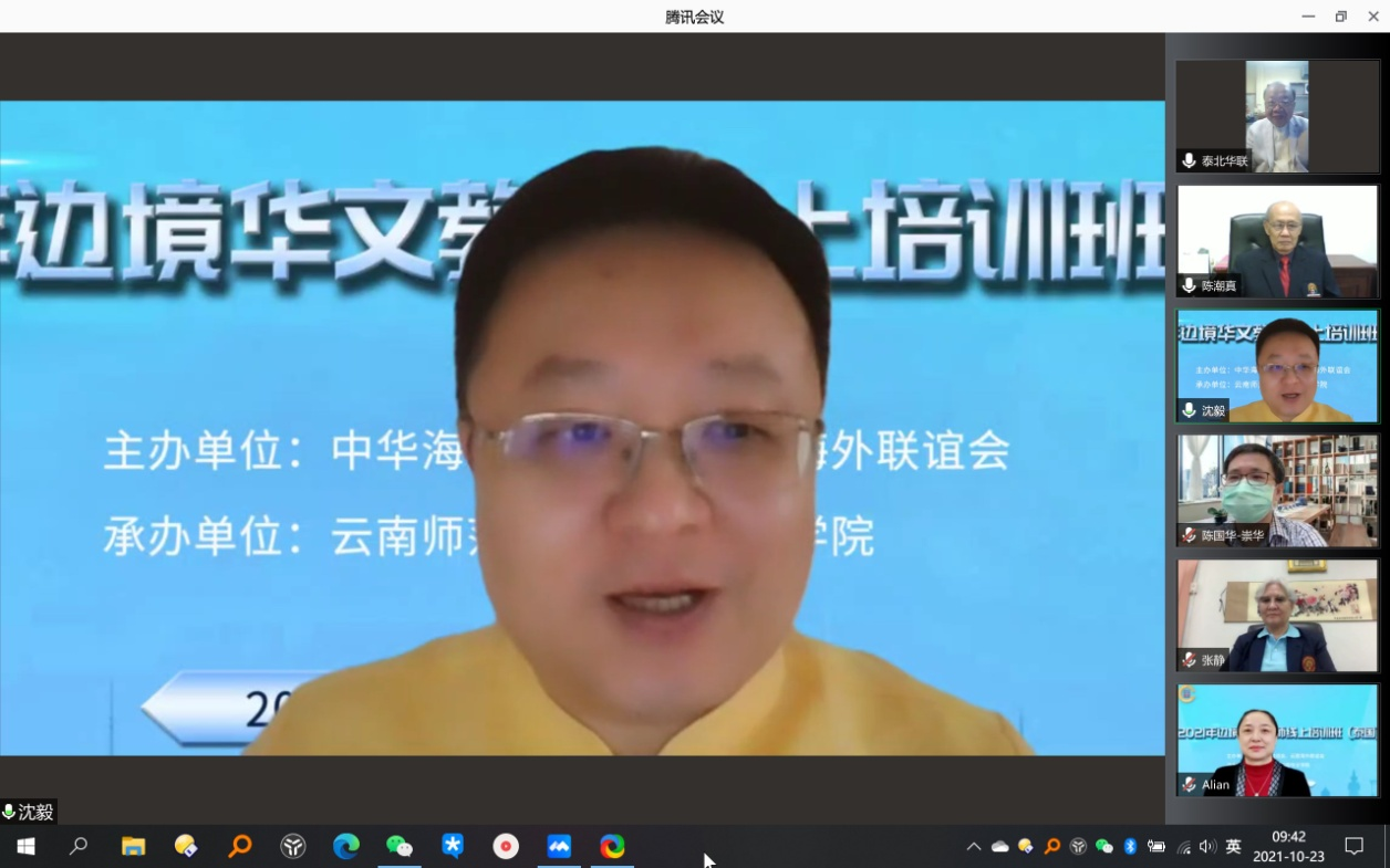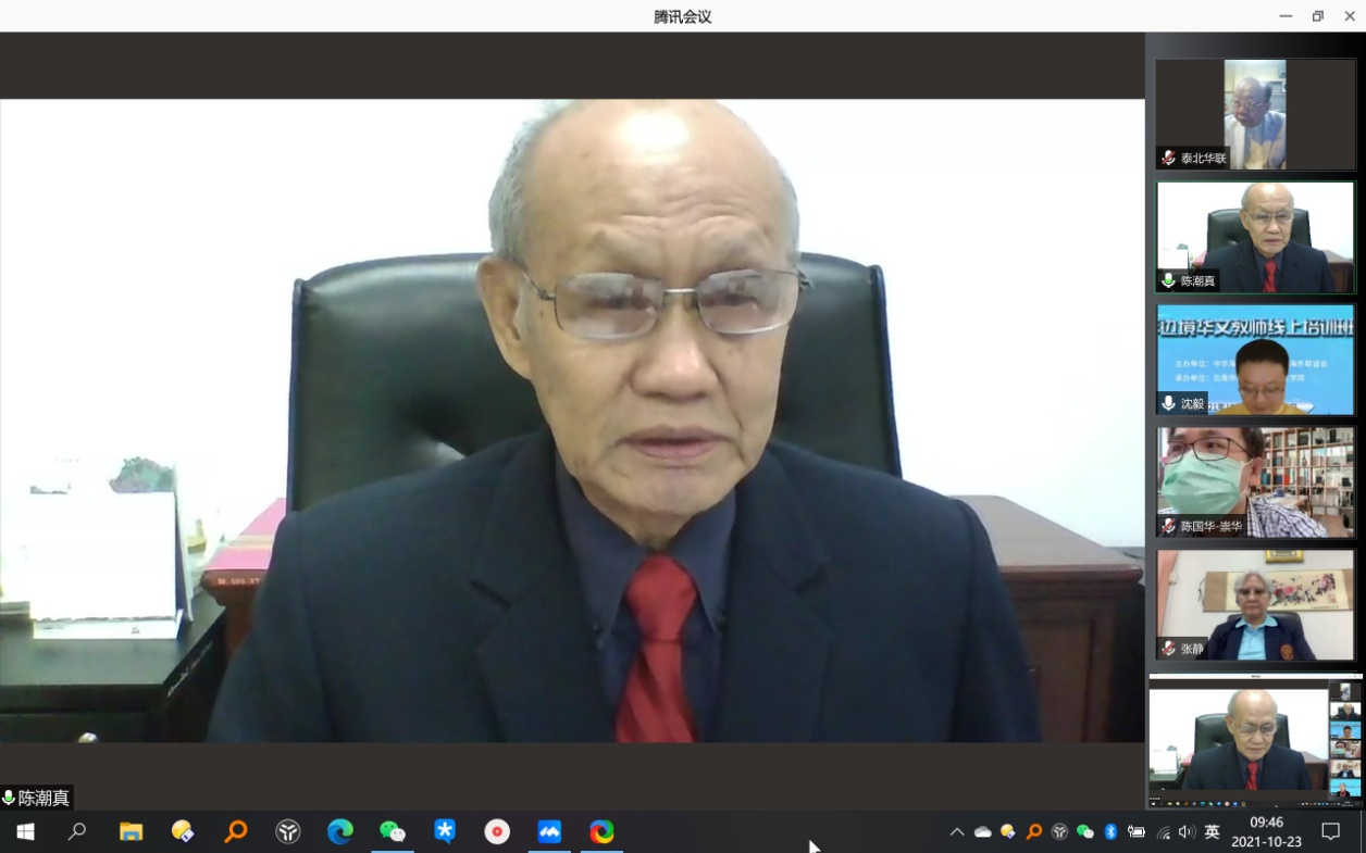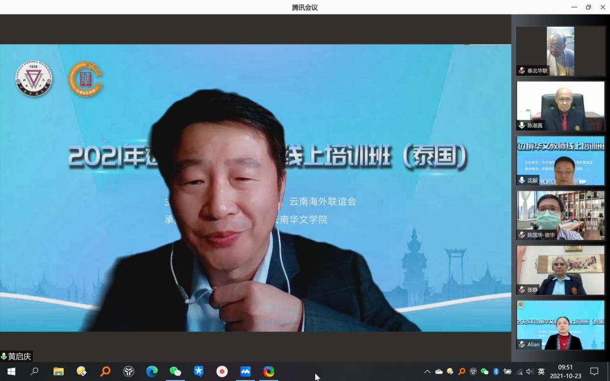 10月23日上午,由中华海外联谊会、云南海外联谊会主办,太阳成集团tyc33455cc官网云南华文学院承办的2021年边境华文教师线上培训班(泰国)开班仪式顺利举行,来自泰国清迈崇华新生华立学校、南邦美速智民学校、北揽坡同德学校的领导和87名本土华文教师参加开班仪式。