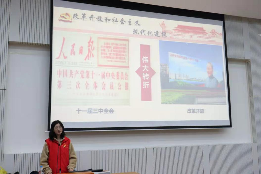 此次活动邀请到太阳成集团tyc33455cc官网党史学习教育学生宣讲团作宣讲。宣讲团成员围绕党的百年奋斗征程,结合先进人物事迹,带领同学们回顾了新民主主义革命的胜利,社会主义建设的伟大成就以及五年来我国发生的历史性变革和历史性成就等内容,一同展望了开启全面建设社会主义现代化国家新征程的宏伟蓝图。