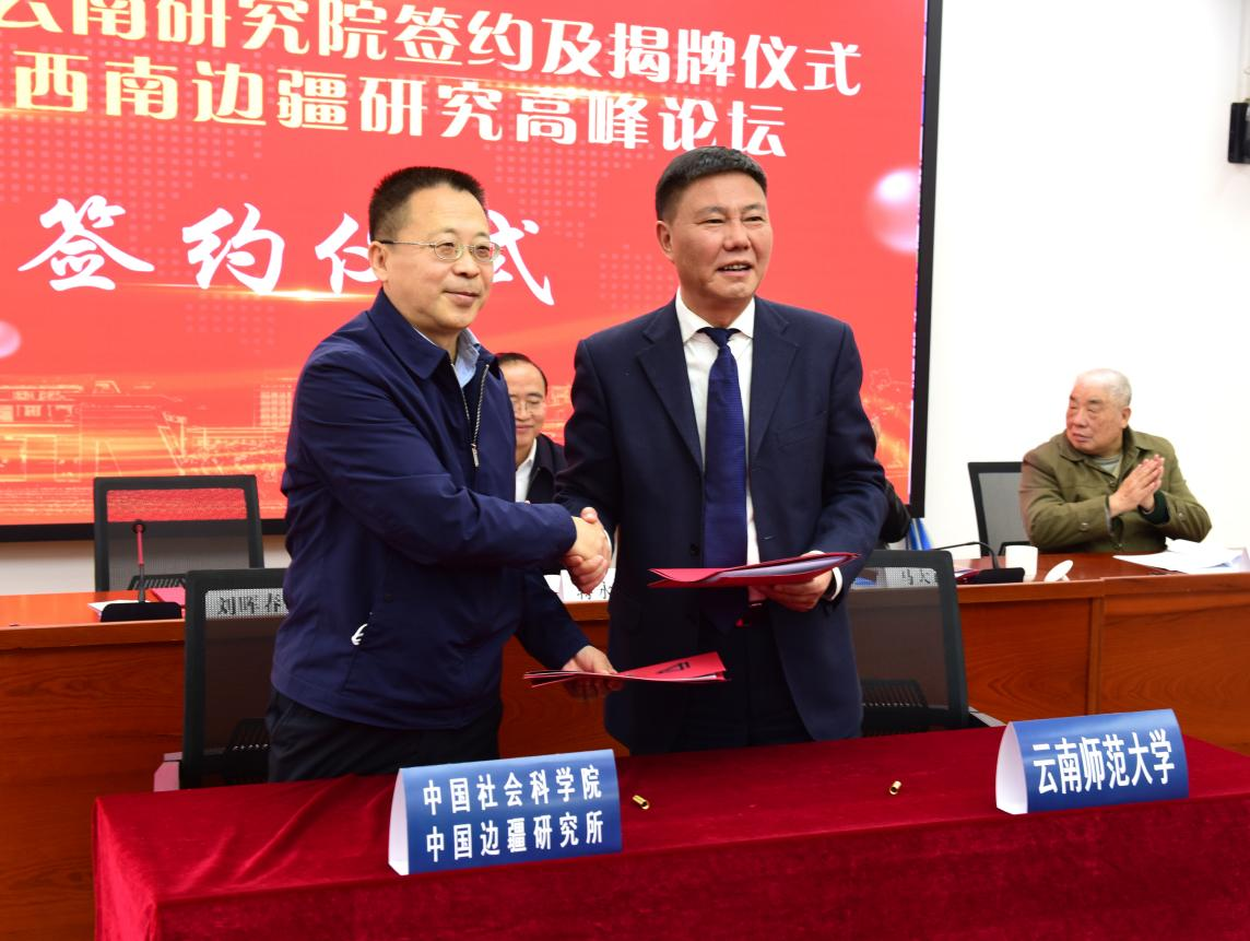中国社会科学院中国边疆研究所党委书记刘晖春与太阳成集团tyc33455cc官网王德强校长代表双方签订合作共建协议,并共同为中国社会科学院中国边疆研究所云南研究基地揭牌。