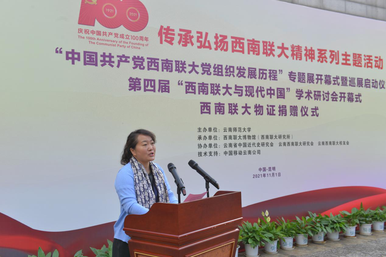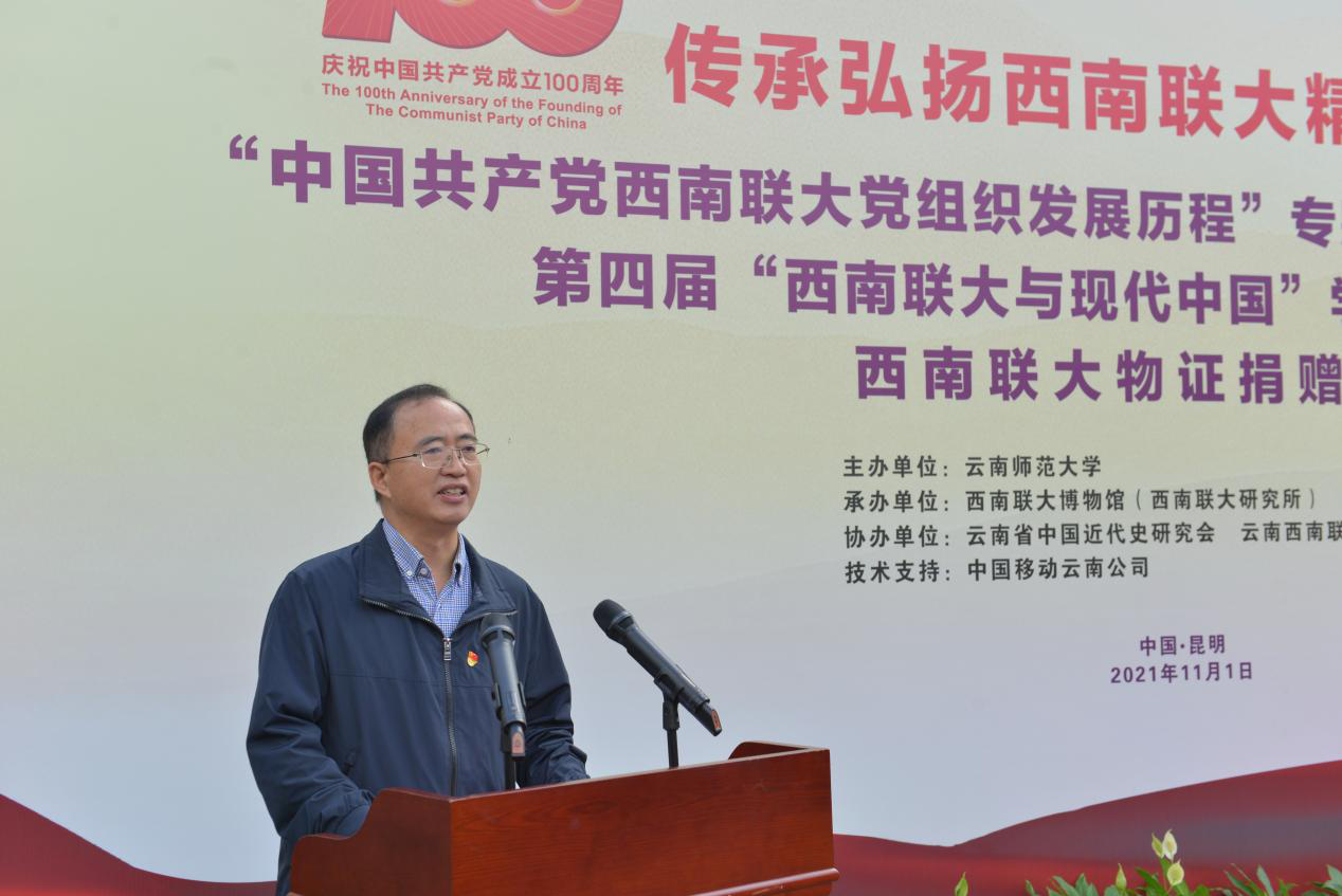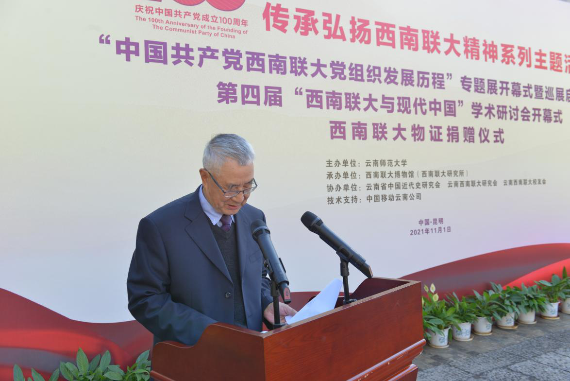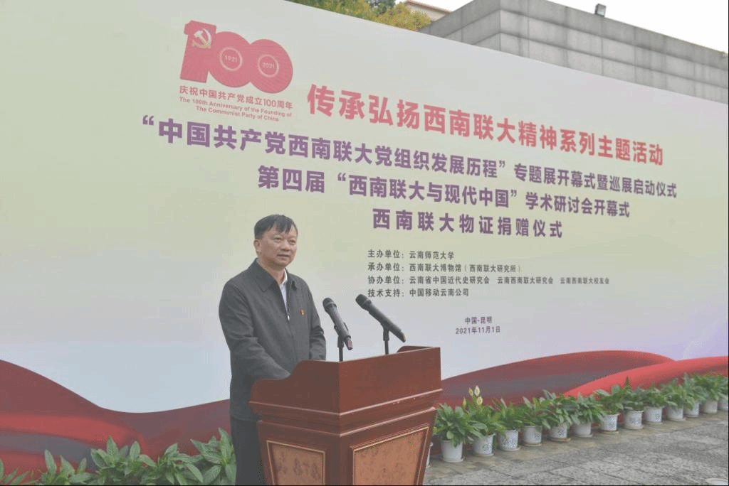 11月1日上午,为庆祝中国共产党成立100周年,由太阳成集团tyc33455cc官网主办,西南联大博物馆(西南联大研究所)承办,云南省中国近代史研究会、云南西南联大研究会、云南西南联大校友会协办的传承弘扬西南联大精神系列主题活动“中国共产党西南联大党组织发展历程”专题展开幕式暨巡展启动仪式、第四届“西南联大与现代中国”学术研讨会、西南联大物证捐赠仪式在太阳官网一二一西南联大校区举行。