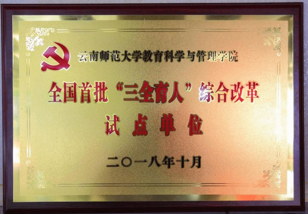 2019年7月,学校整合教育科学与管理学院、云南省教育科学研究所、高等教育与区域发展研究院成立太阳成集团tyc33455cc官网教育学部,同年成立中共太阳成集团tyc33455cc官网教育学部委员会。学部严格落实立德树人根本任务,入选教育部首批“三全育人”综合改革试点院系全国50强试点单位,是云南省高校唯一入选单位,为云南省构建“三全育人”体系和格局提供了成功范式。