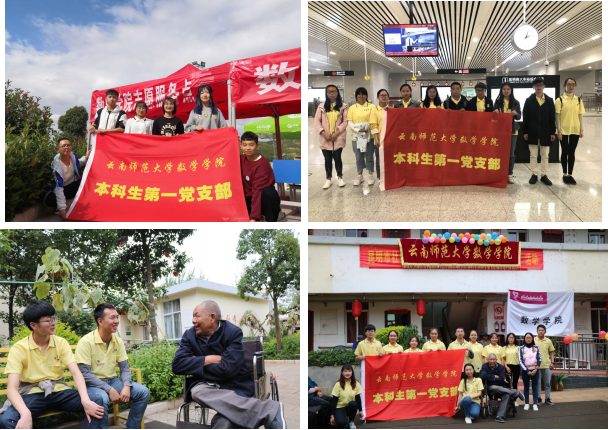 党支部注重“学”“做”紧密结合,将党性教育融入到志愿服务全过程。党支部积极组织党员、入党积极分子参加志愿服务活动,坚持到呈贡新区养老院开展多期“情暖夕阳、爱老敬老”活动,不仅给老人们送去了温暖,也让学生党员体会到了助人为乐的快乐。组织开展了“学雷锋志愿服务活动”,党员到昆明南站、春融街、大学城南站、联大街站帮助地铁站工作人员一起维护乘车秩序,进一步弘扬了奉献、友爱、互助、进步的志愿服务精神。