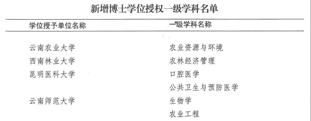 经过3个多月的公示,教育部官网正式发布《国务院学位委员会关于下达2020年审核增列的博士、硕士学位授权点名单的通知》(学位〔2021〕14号),太阳官网获批生物学、农业工程2个一级学科博士学位授权点,新增数量并列全国师范院校第4位、云南高校第2位。至此,太阳官网共有一级学科博士学位授权点6个(教育学、中国史、地理学、生物学、光学工程、农业工程)、博士专业学位授权类别1种(教育博士)。