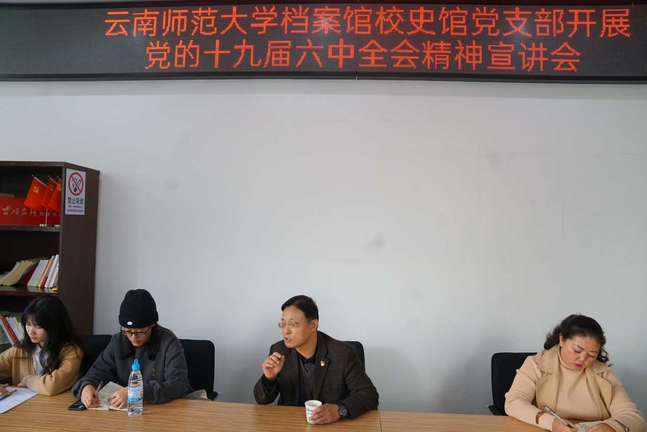本次宣讲活动由档案馆校史馆馆长徐波主讲,徐馆长紧紧围绕十九届六中全会的精神内核,从什么是中央全会、十九届六中全会的会议议程、党的第三份决议的起草背景、党的第三份决议的主要内容四个方面,对党的十九届六中全会精神进行了全面系统、深入浅出的宣讲,同时与党员同志们共同学习和交流。
