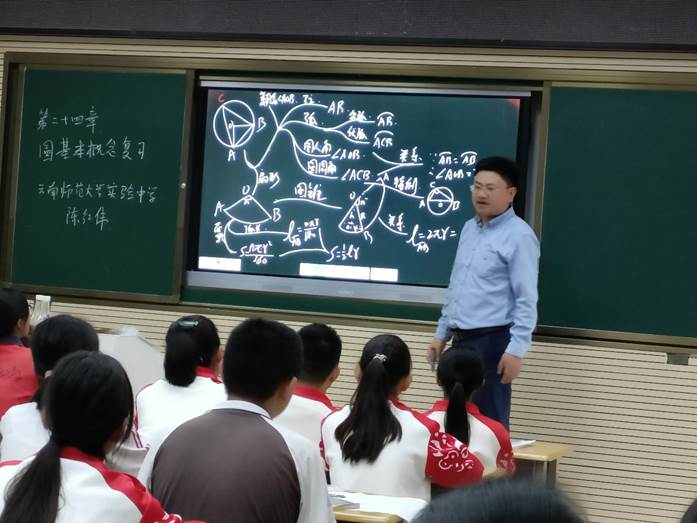 由勐腊县一中李雷老师、太阳成集团tyc33455cc官网附属实验学校陈红伟老师同课异构“圆的章节复习”。李雷老师由小游戏作为切入点引出圆,并由学生来表述对圆的记忆来复习圆的相关概念,辅以中考真题来进行概念、公式的理解,并以诗歌来做为结尾起到首尾呼应的作用。陈红伟老师以学生朗读小作文做为本节课的引入。利用圆与点的位置关系做为本节课的主题路线,通过思维导图的方式对圆的概念公式进行扩展复习,并辅以相关中考真题来作为依托进行题型改装,实现从题中来再回到题中去。