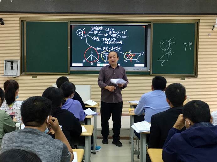 课后,孔德宏老师主持两位老师公开课的议课评课。由李老师、陈老师详细说明自己的教学步骤和设计意图,并对授课中出现的问题进行了自我反思。参会各校教师代表对两位老师的课进行了点评。老师们分别从教学设计、教学技巧、教学用具的使用、目标达成、师生活动等方面对两位老师的教学作出了客观评价,做的好的方面给予了肯定,也对进一步完善本课教学提出了相应建议。最后,孔德宏老师对两位老师提出教学上的建议,要上好圆这一章节要把握好圆的性质-----对称性。从题引出考点的考法和对题型如何进行改进多方面的进行知识点的全面复习。如何引导数学在生活中的应用。