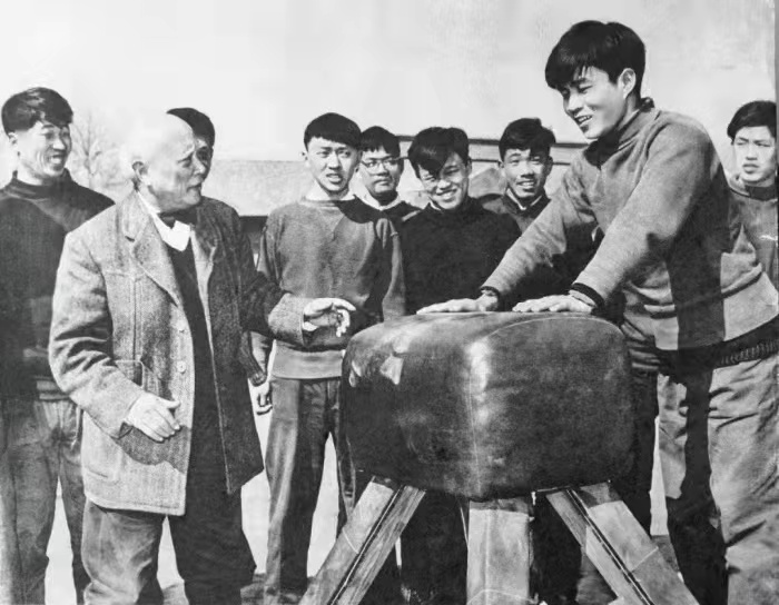 马约翰教授指导学生练习体操