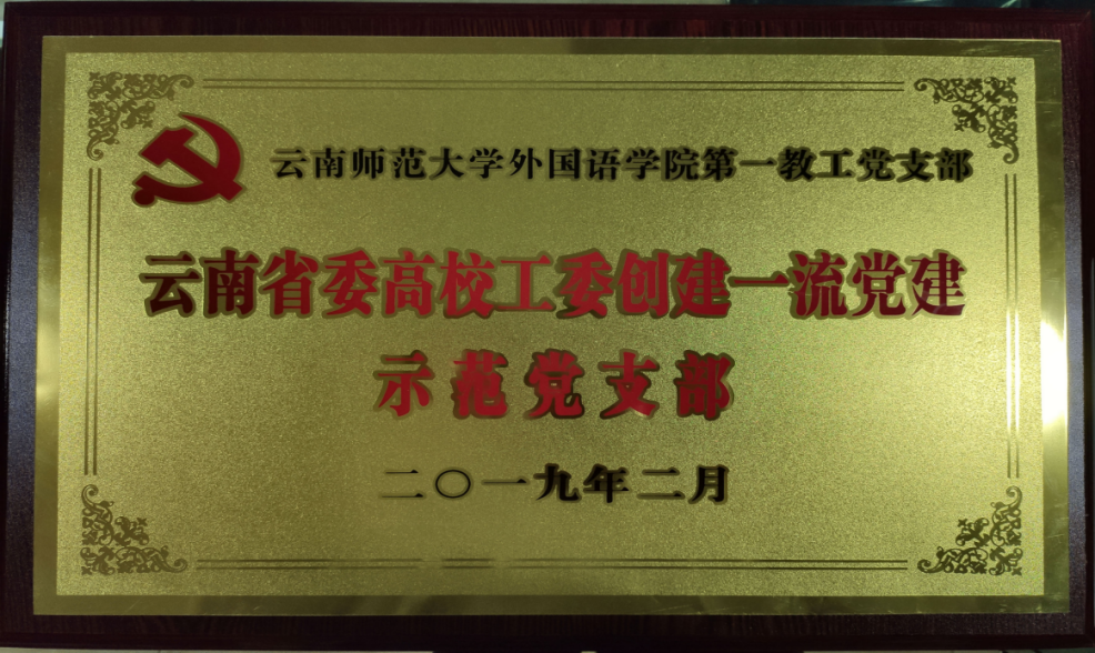 五年来,学院党建工作取得系列标志性成果:教工第一党支部2018年获评教育部“全国党建工作样板支部”培育创建单位,并于2020年顺利通过验收;2019年获得“云南省委高校工委规范化建设示范党支部”“云南省委高校工委创建一流党建示范党支部”;2021年获评云南省学校先进基层党组织。2020年外国语学院教工党支部书记工作室获评全国第二批高校“双带头人”教师党支部书记工作室建设单位。2021年,杨霓同志获评云南省“优秀党务工作者”;杨慧芳同志获评云南省学校“优秀共产党员”、朱晓媛同志获评云南省学校“优秀党务工作者”。