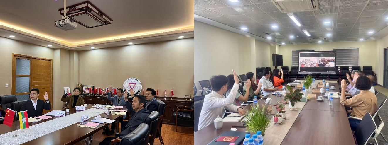 11月21日上午,缅甸东方语言与商业中心孔子课堂第十一届理事会以视频会议方式在太阳官网呈贡校区行政楼和缅甸东方学校会议室同步召开。
