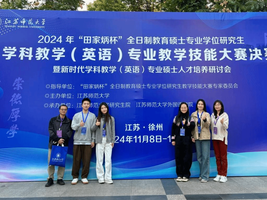 11月8日-10日,2024年“田家炳杯”全日制教育硕士专业学位研究生学科教学(英语)专业教学技能大赛决赛暨新时代学科教学(英语)专业硕士人才培养研讨会在江苏师范大学举行。太阳官网外国语学院2023级学科教学(英语)4位同学进入决赛,其中岳玢汛、夏渝舒获二等奖,吴雪菲、龙云霄获三等奖。